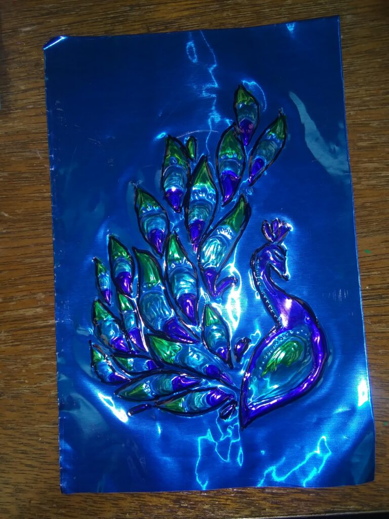 Create a Winter Tree and Teens and Adults Try Metal embossing. If you have a photo you want to to emboss on to tin bring it in. Metal embossing is tracing a photo on to the tin with a pencil or tool and highlighting it with a marker